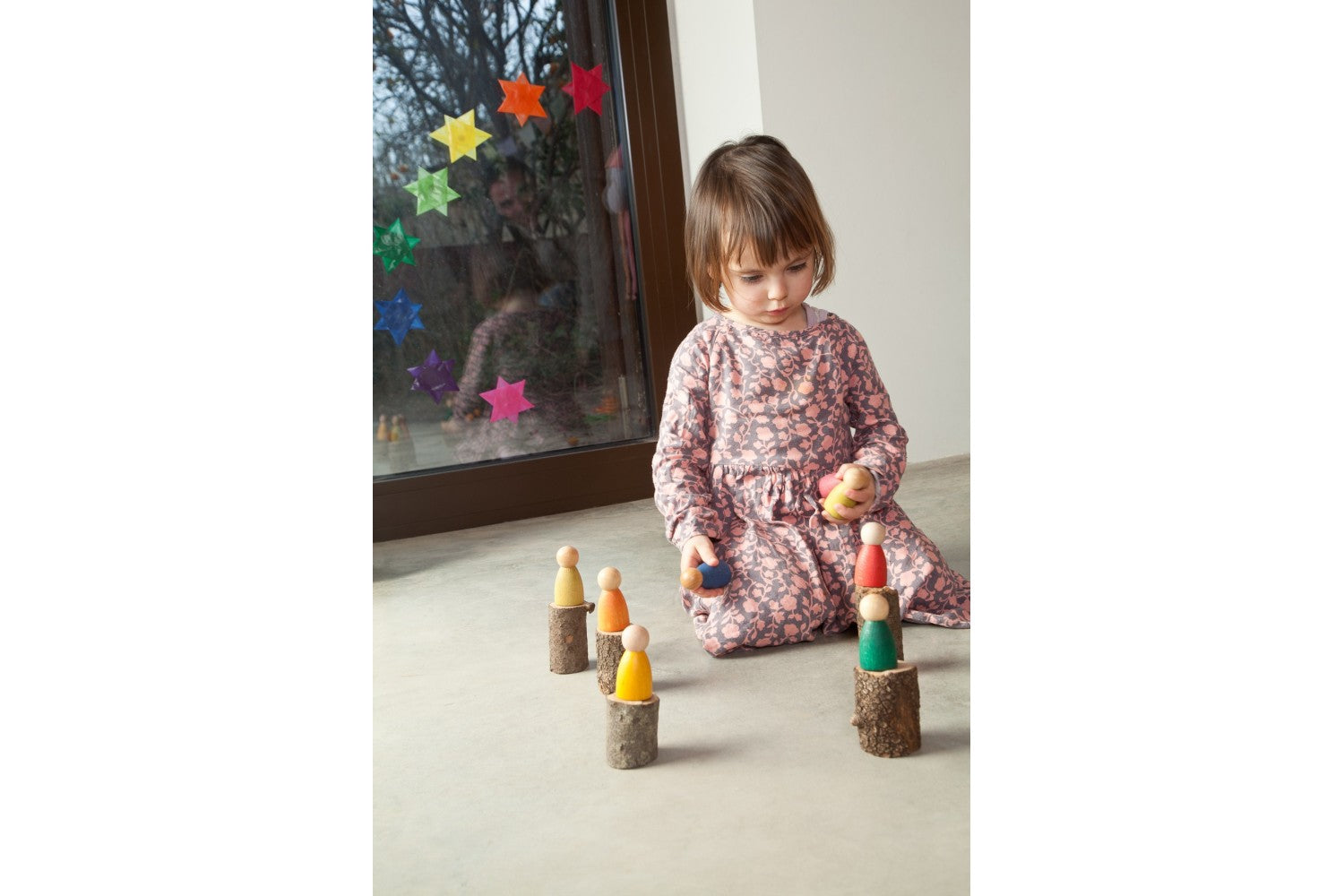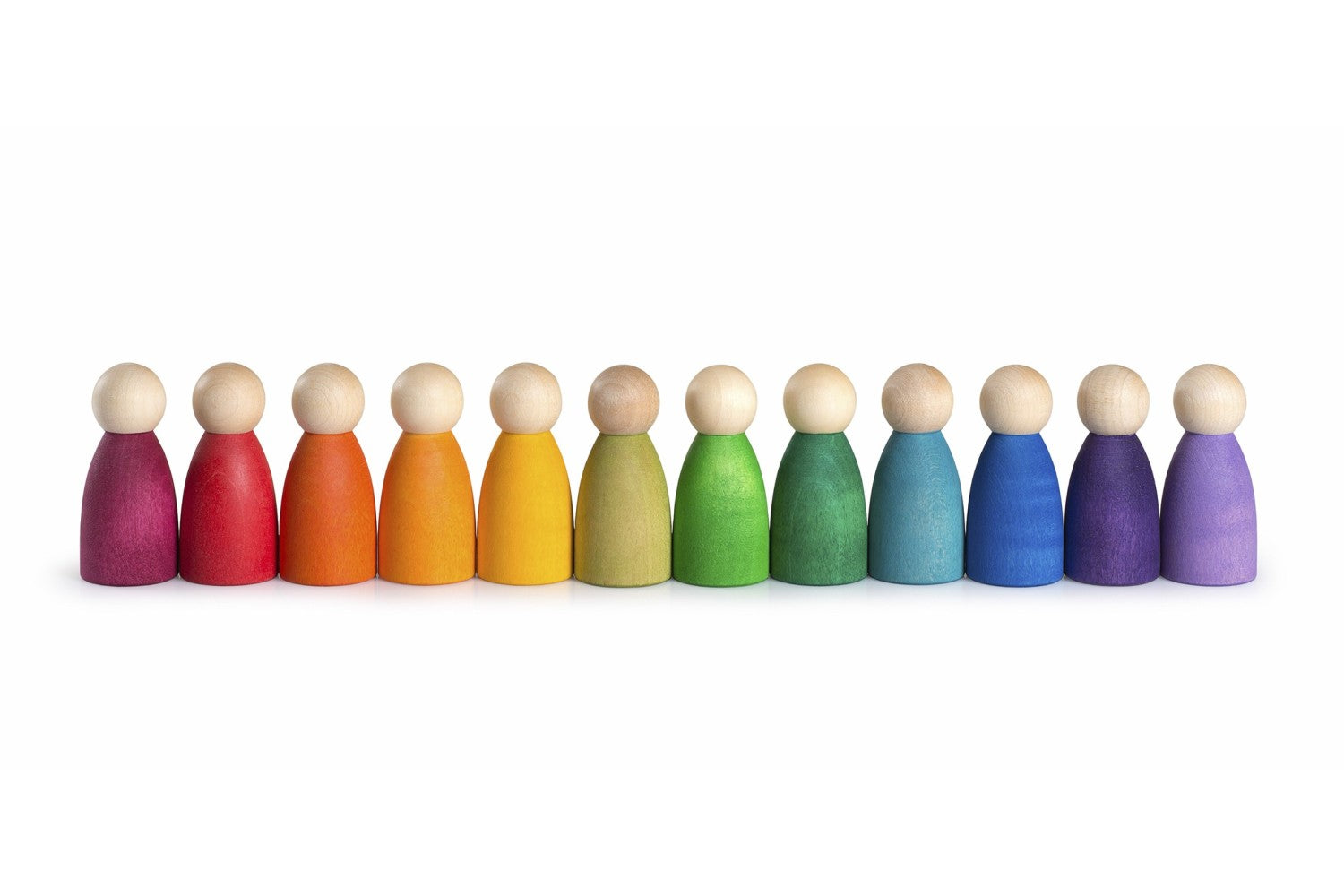Die 12 Nins von Grapat sind farbenfrohe Spielfiguren in Regenbogenfarben, perfekt für kreatives und symbolisches Spiel. Jede Figur ist geschlechtsneutral und ausdruckslos, was Kindern maximale Freiheit für ihre Fantasie gibt. Das Set eignet sich hervorragend für Geschichtenerzählen, zum Erschaffen von Miniaturwelten und für pädagogische Spiele – von Mathematik über Sprache bis zu Sinneserfahrungen. Die hochwertigen Holzfiguren werden in einer zertifizierten Bio-Baumwolltasche geliefert. Ein vielseitiges, nachhaltiges Spielzeug, das Kreativität und Entwicklung fördert.