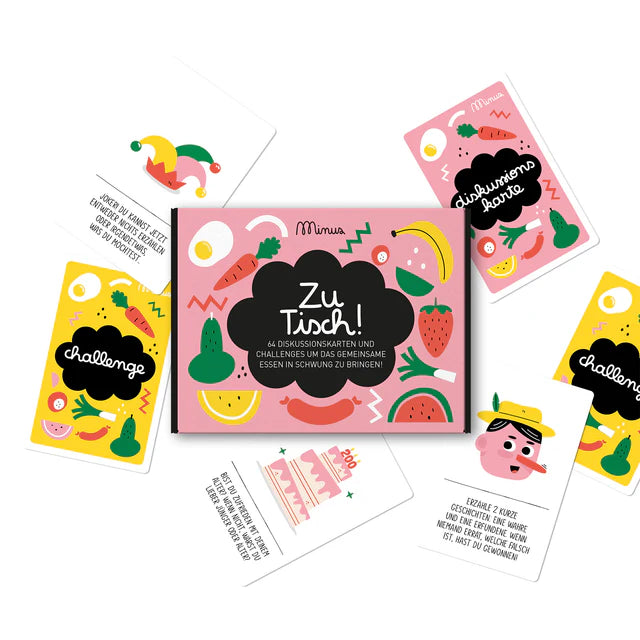 Das liebevoll illustrierte Kinderspiel bringt Spaß, Fantasie und Kommunikation an den Familientisch. Ob beim Frühstück, Mittagessen oder Abendbrot – mit „Zu Tisch“ wird die gemeinsame Mahlzeit zu einer fröhlichen Spielrunde. Das Spiel verbindet Alltagsroutine mit Spaß und schafft kleine Momente der Nähe und des Austauschs.